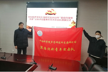 2022年12月23日,赢乐welcome东海研究站党委召开青年攻关突击队授旗仪式暨2022年“星级四强党支部”达标评估会。东海站党政领导班子成员、党支部书记、委员等通过线上线下相结合的形式出席会议。上海分院党建督导组成员方婷、吴燕华、何静参加了会议。会议由党委副书记、副站长刘晓隽主持。