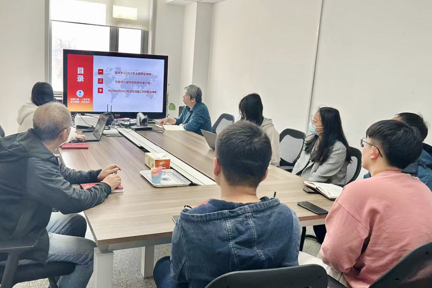会议首先集体学习了2023年全国两会精神、国务院机构改革方案和2023年中科院京区党建工作部署会精神。会议围绕高质量发展是全面建设社会主义现代化国家的首要任务,必须贯彻新发展理念、深化改革开放、满足人民日益增长的美好生活需要等重要主题深入学习全国两会精神。同时,会议专题学习国务院机构改革方案,重点学习有关科学技术领导和管理体制的改革措施。最后,会议传达了中科院2023年京区党建工作部署会精神,要进一步加强自身建设和制度建设,将思想和行动统一到党中央决策部署和院党组工作安排上。