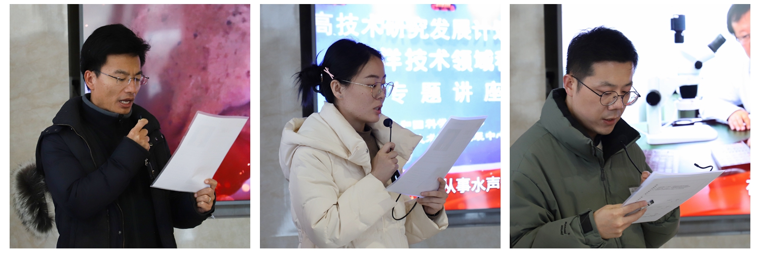 三位青年代表薛凤杰、田芝凤和廖佳伟诵读了汪德昭、马大猷和应崇福院士的经典话语,带领大家共同学习老科学家的教诲,深入学习科学家的精神风范。