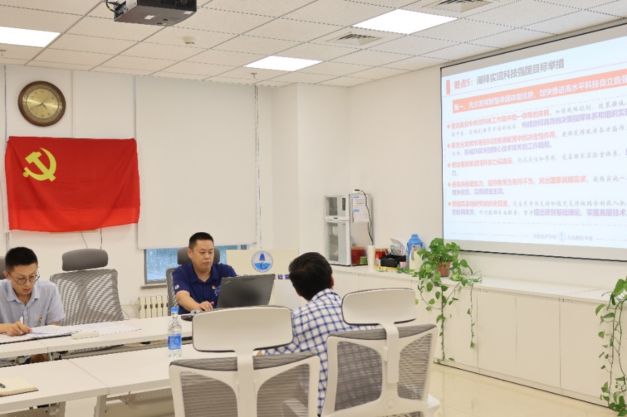 2024年7月12日下午,水下航行器党总支在新科研楼627会议室召开党员大会,集中学习贯彻习近平总书记在全国科技大会、国家科学技术奖励大会、两院院士大会上的重要讲话精神。会议由总支副书记刘明刚主持。