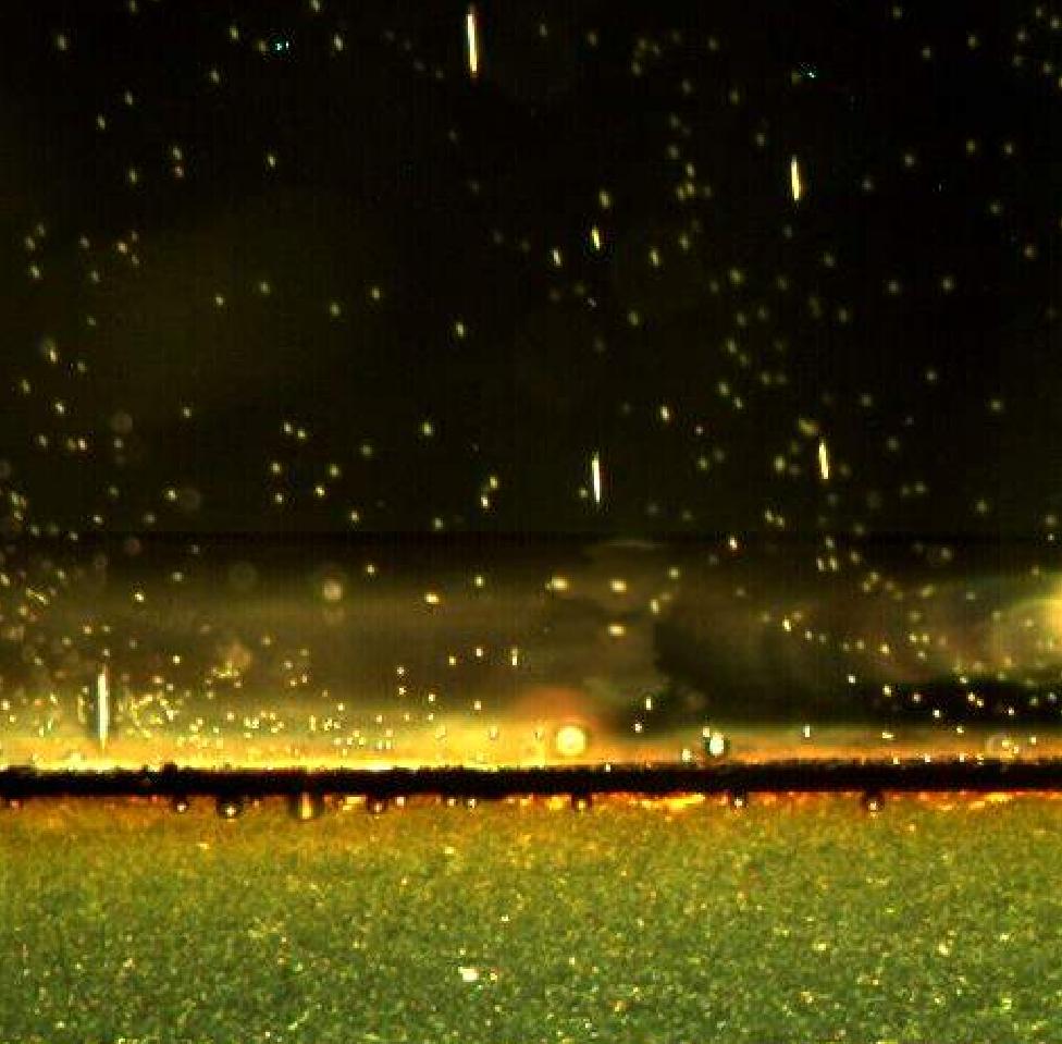 实验方法:将一根直径1毫米的金属丝和一根石墨棒,分别用导线与一个直流电源相连。金属丝和石墨棒置于玻璃水槽中。启动电源,金属丝产生电解气泡,用高速显微摄影拍摄金属丝产泡区域得到以上图像。