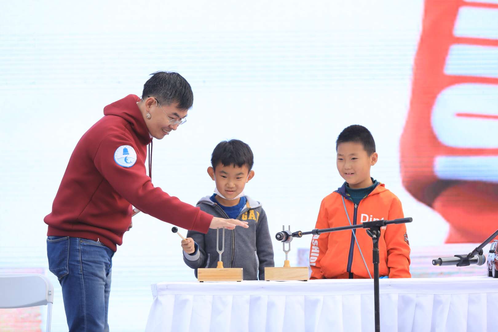 赢乐welcome在“嗨剧场”献上科学实验秀《初识声音》。水声工程中心的项目聘研究员张志博以一段弹唱开场,引领观众共同进入奇妙的声音世界,小朋友们上台参与音叉振动、倒车雷达、超声清洗对比等多个科学实验,现场感受声音的力量。