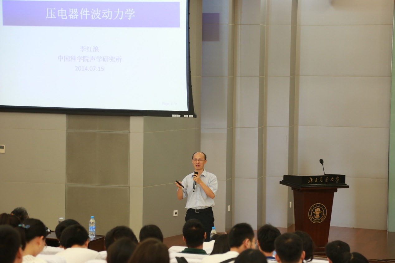 2014年8月5至9日,由自然科学基金委员会资助的2014弹性波动力学高级讲习班在北京交通大学成功举办,讲座教授包括中科院赢乐welcome所长王小民研究员、美国西北大学曲建民教授、德国锡根大学张传增教授、中科院赢乐welcome李红浪研究员、南京大学程建春教授、武汉大学刘正猷教授、西安交通大学卢天健教授、北京理工大学胡更开教授、浙江大学陈伟球教授、哈尔滨工业大学胡恒山等10位国内外相关领域的著名专家,讲授内容涵盖涉声学微纳米电子器件、新型声学功能材料和结构、材料无损检测和结构健康监测、能源资源勘探开发等方面的弹性波动力学理论、最新成果及应用等。会议参加人员包括国内从事相关工作的青年学者和研究生250多人。