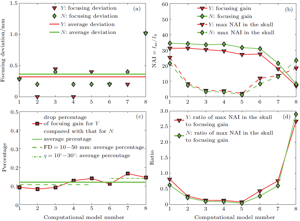 研究结果表明,如果忽略模式转换效应,颅骨处声能量沉积以及聚焦超声引起的颅骨温度上升会被低估,同时,焦域处声强聚焦增益以及温升则会被高估;剪切波贡献了相当一部分的颅骨处的声能量沉积以及温升。