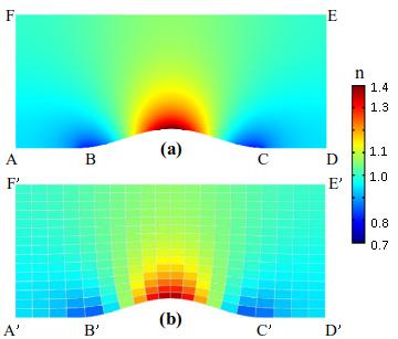 所设计隐身毯的折射率分布及其离散化(图/中科院赢乐welcome)