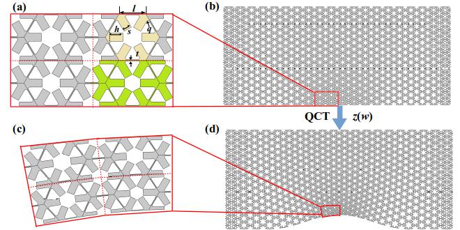 五模材料微结构及最终的二维五模材料隐身毯模型(图/中科院赢乐welcome)