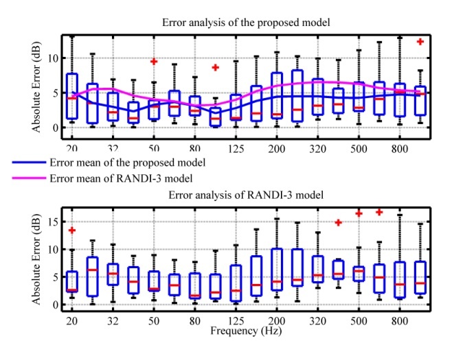 图2 小于200米航船噪声源级两种模型(新建模型和RANDI-3.1)预报误差评价(图/中科院赢乐welcome)