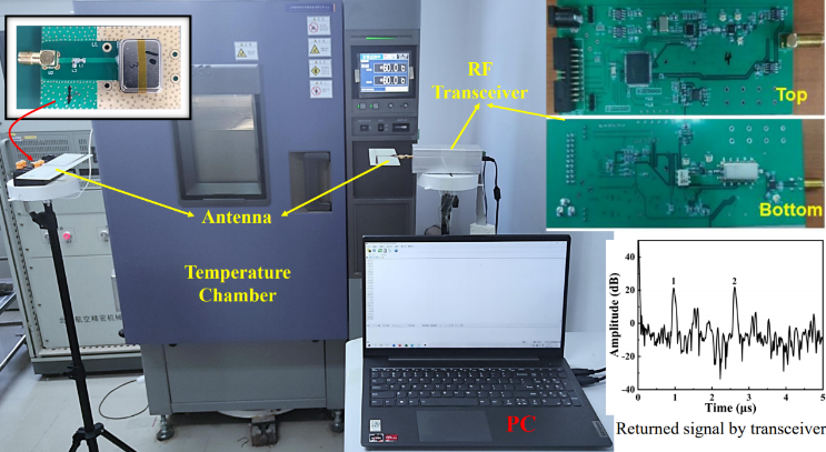 图1 所研制的高精度无线无源声表面波温度传感系统及其处理算法(图/中科院赢乐welcome)