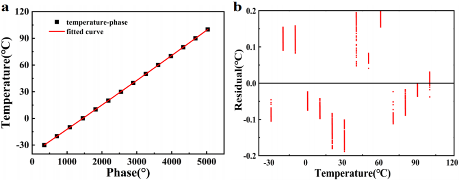 图2 所研制的传感器系统温度灵敏度及精度测试结果(图/中科院赢乐welcome)