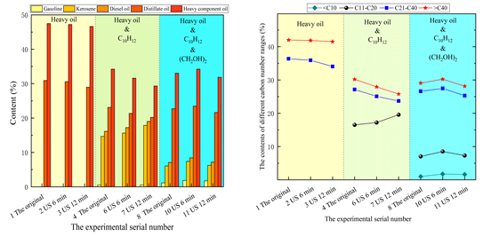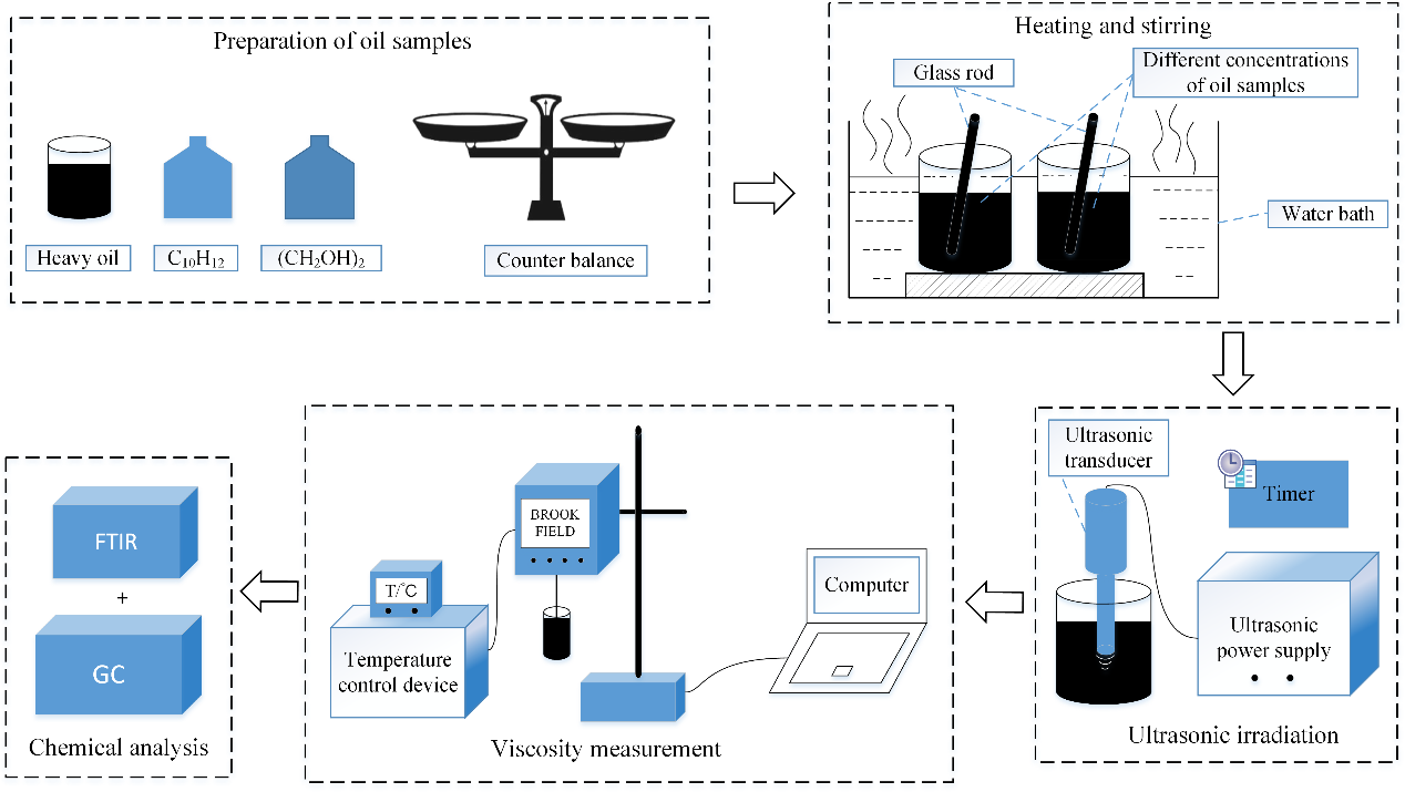 研究人员探究了超声对重油黏度的影响,对比了稳定剂四氢化萘、助空化剂乙二醇的加入对超声作用于重油油样的影响。最后结合傅里叶变换红外光谱仪和气相色谱仪对超声作用前后的油样的分析结果,得到了油样的官能团成分与含量、重轻质组分含量、碳数分布的变化情况,明确了超声作用对重油黏度和化学结构影响的机理。