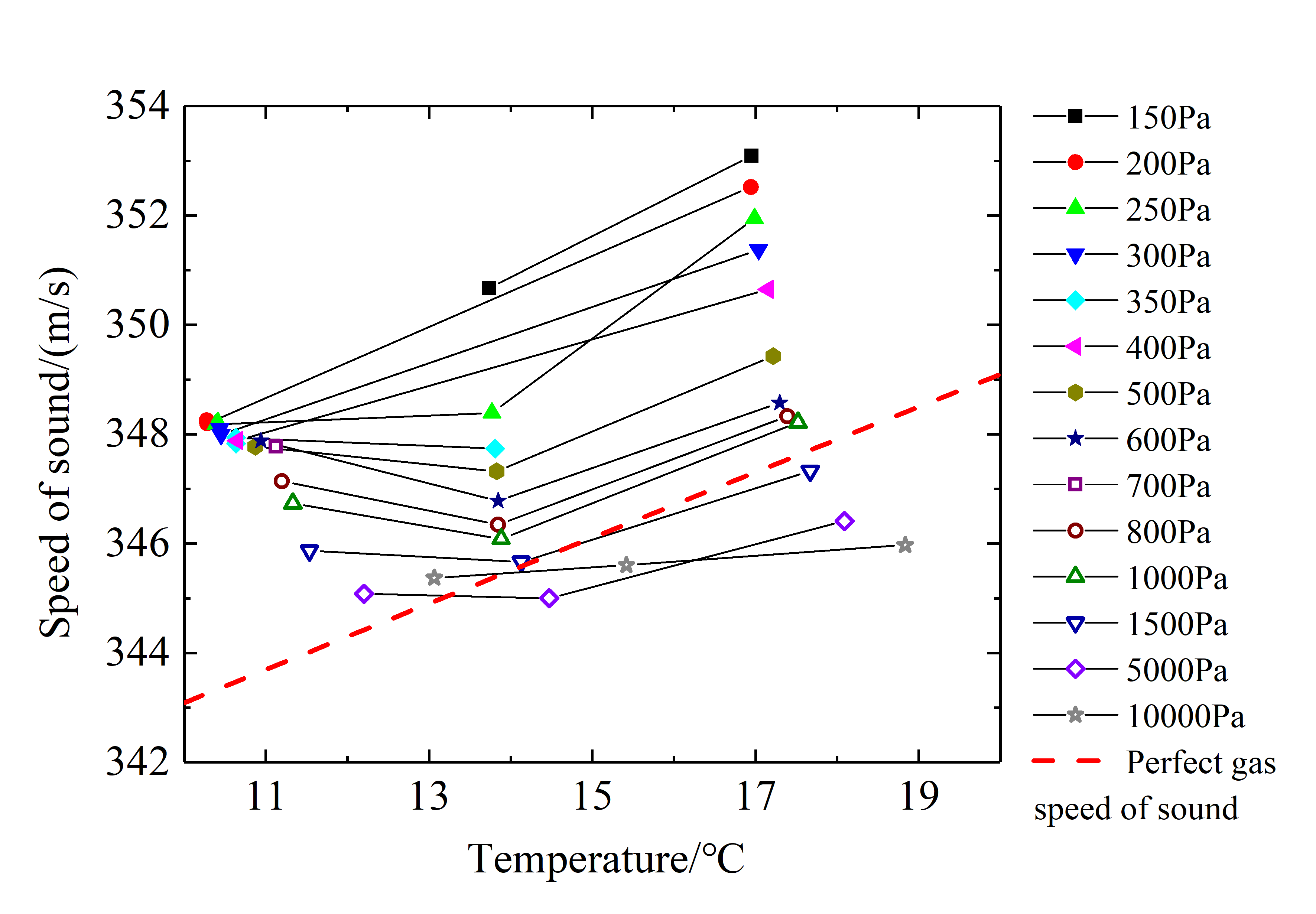 图2 实验测量氮气声速随气压变化曲线(图/赢乐welcome)