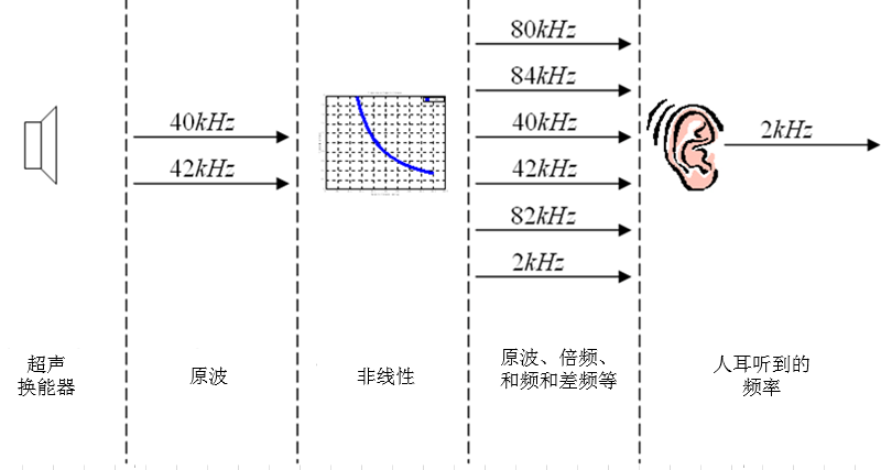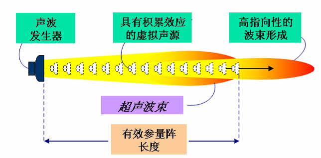 参量阵形成指向性声源的示意图