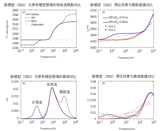 在该工作中,研究人员在全面表征波长尺度上全局流动的基础上,分别引入Rayleigh振荡模型和孔隙颗粒模型来表征中观尺度上的介观流动和孔隙尺度上的喷射流动,构建了多尺度波致流理论模型,并利用0.1-1000Hz的宽频段地震数据和600 kHz的超声数据来检验模型的适用性。