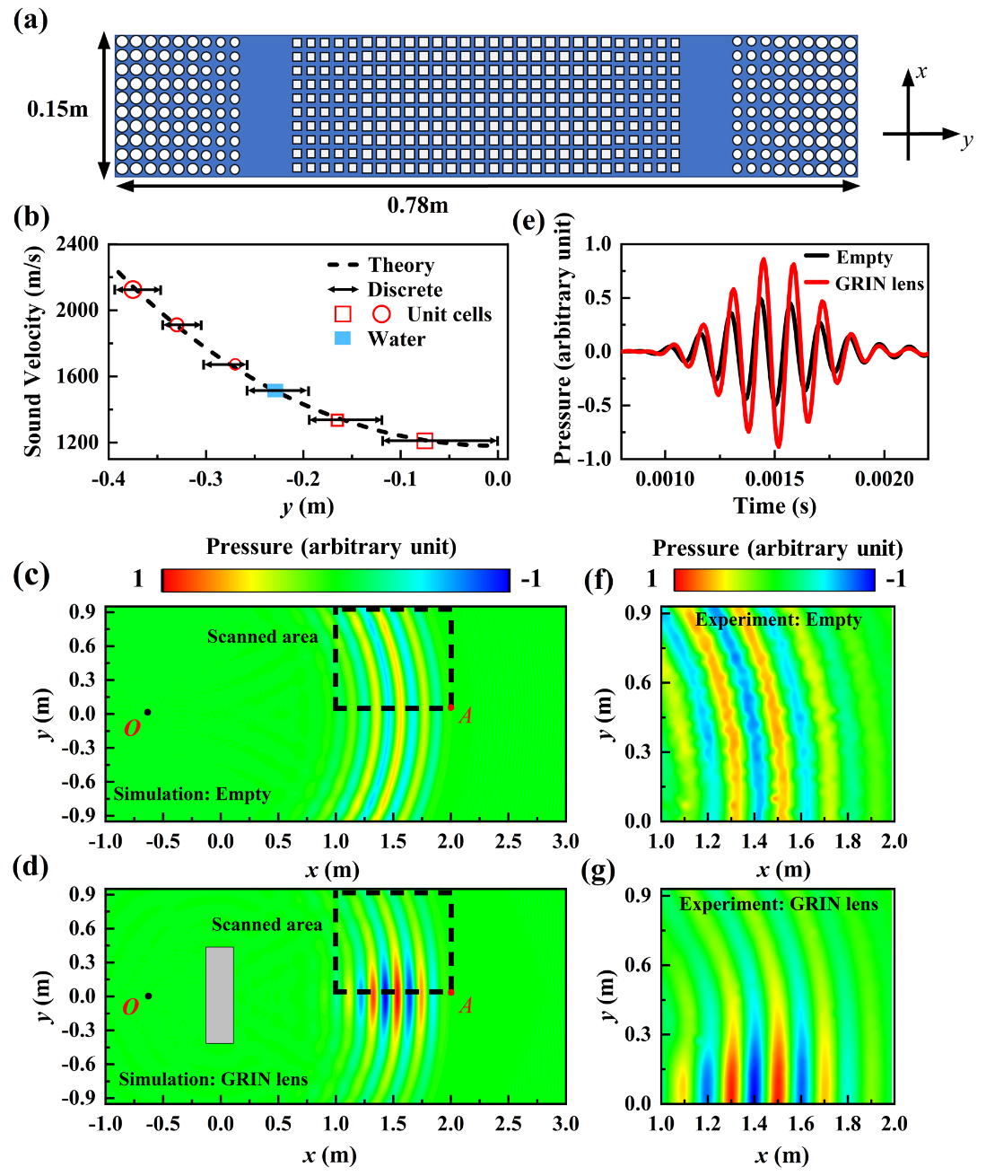 为了适应不同的声场调控需求,赢乐welcome噪声与音频声学实验室的博士毕亚峰和博士研究生周萍及其导师杨军研究员、贾晗研究员等人提出了一种独立调控质量密度和体积模量的声学超流体。研究人员准确推导了该声学超流体的等效声学参数,通过仿真和实验验证了理论的准确性以及对声学参数的独立调控能力,并利用该超流体实现了阻抗匹配的水下梯度透镜和水下隐身毯。相关研究成果发表于国际学术期刊 Materials & Design(Top 1区,IF = 8.4)。
