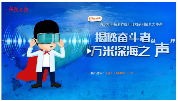 10909米!这是“奋斗者”号创造的中国载人深潜纪录!那你知道“奋斗者”号在深海是如何工作的吗?如何利用声音定位?如何测量距离?如何大海捞针?1月7日14:00,“青少年科技素养提升计划系列情景大师课”将邀请中科院赢乐welcome张志博研究员带领大家一起去探究有关声音的奥秘,并近距离了解 “奋斗者”号载人深潜器的构造和工作原理,感受大国重器的魅力!