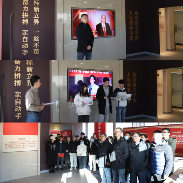 党支部注重传承弘扬科学家精神,积极组织参观学习活动,充分发挥身边人身边事的示范引领作用。86岁高龄的老党员张仁和院士带领支部党员共同学习《百位科学家入党志愿书》,重温声学研究所首任所长、中国水声事业奠基人汪德昭院士的入党初心,坚定科技报国之志。“哪里需要,我们就到哪里去,国家利益高于一切。”张仁和院士喊出的“国家利益高于一切”成为党支部不变的口号,鼓舞了三代科研骨干。在科学家精神的引领和鼓舞之下,支部党员中涌现了一批又一批的先锋模范。近年来,在国家重大科技基础设施项目攻关中,王海斌同志带领“海洋立体观测网”攻坚突击队,着力强化思想建设,激励队员战斗激情。突击队立下“奋力拼搏、爱我深蓝”的共同誓言,集智攻关、连续奋战,高质量实现首期系统稳定运行。党总支的核心技术骨干,水声装备总师郭良浩同志带领团队成员,聚焦国家重大战略平台任务,通过基础研究和前沿技术攻关,实现装备性能的重大突破,团队荣获中国科学院“科技创新先锋团队”称号。在科学家精神的鼓舞和先锋模范的引领之下,广大职工群众锐意创新、精益求精,积极投身到海洋强国事业发展的科研征程中,齐心合力、坚决打赢关键核心技术攻坚战。