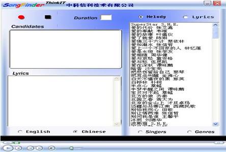 用户只需要说出一句或几句歌词,即可为用户自动检索出查询的歌曲名称;音乐哼唱评分系统从演唱者的语音中提取出每个音符的音高和音长,和所唱歌曲的音高和音长进行比对,就可以知道演唱者音高和音长的准确程度,从而可以对演唱者的演唱水平给出一个初步的评价。