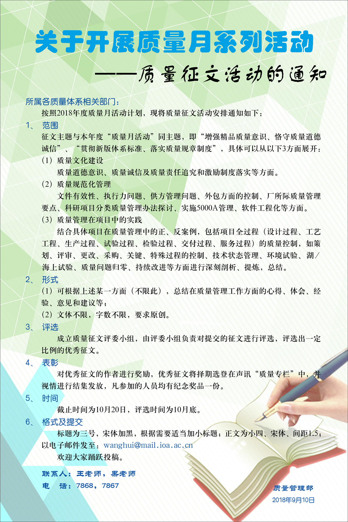 关于开展质量月系列活动——质量征文活动的通知