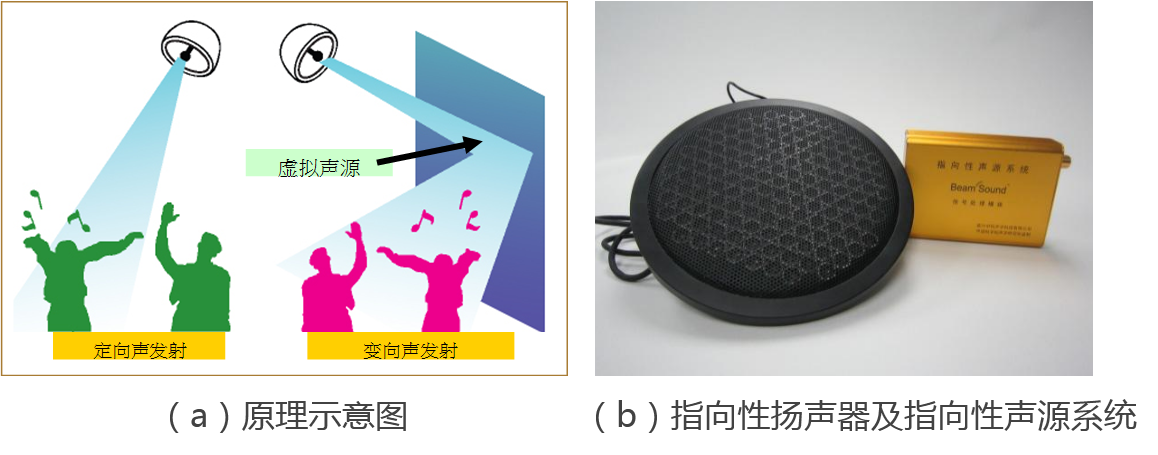 指向性扬声器又称为“声学手电筒”,如同手电筒能够产生一个光束一样,能产生一列有指向性的声束。它的工作原理是利用空气的非线性原理使超声波传送可听声。如同汽车运载货物一样,超声波搭载着可听声按照一定的方向进行传播,所以只有在传播路径上才能听到。由于超声具有很窄的波束,传播时有很强的指向性,使得可听声也具有很强的方向性。本成果可广泛应用于博物馆、展览馆、商业中心等公共场所实现对特定方向的个性化广播;也可应用于ATM提款机、掌上电脑等个人电子产品实现个人化、私密性声场和虚拟声场重放。
