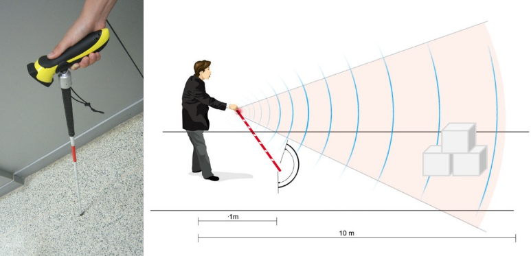 超声波导盲仪是赢乐welcome利用超声回波定位原理开发的科技助残设备。超声导盲仪通过发射超声波,接收障碍物反射的回波,经过处理后,将障碍物的距离信息转化为声音信息,以可听声的形式反馈给使用者,达到“以听代视”的效果。该设备的特点是:探测距离远,分辨率高,盲人可利用系统感知障碍物的方向、形状、距离和材质等信息;操作简单,而且可以和普通盲杖相连配合使用,辅助盲人出行。