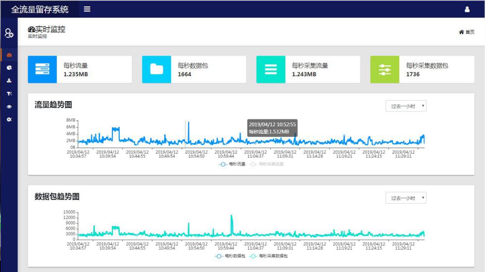 全流量留存系统是一款网络数据分析系统,能实现10Gbps吞吐网络流量的线速采集和持续存储,对所采集的数据包进行识别和分析,实时统计流量与带宽,并能对网络活动进行监控和审计,支持从TB级数据中检索单条数据流并提供秒级下载,提供企业级网络安全保障,帮助网络管理人员快速准确地定位各种网络问题,可应用于电信运营商、有线运营商、金融等重点行业,为网络安全运营和运维的提供基础设施和数据支撑。