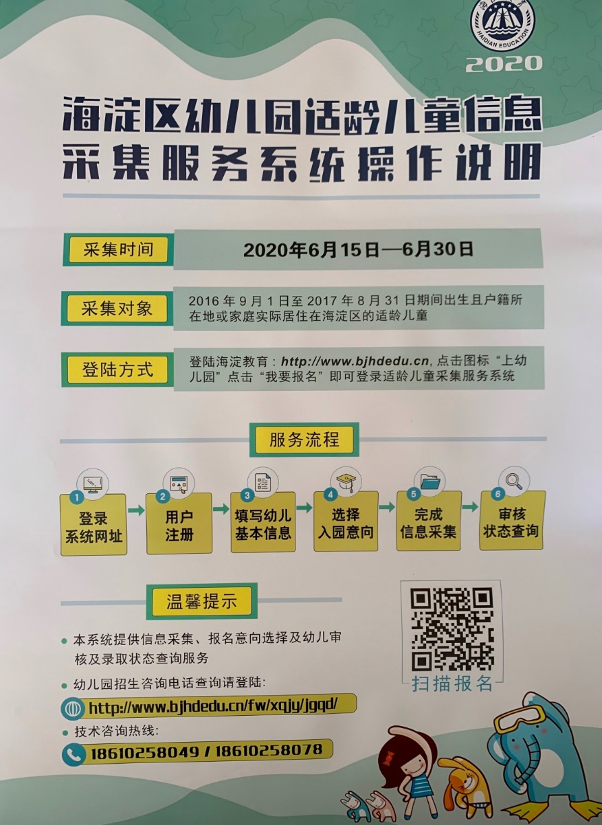 2020海淀区年适龄幼儿入园网上登记报名的时间已经确定,请报名2020年入中科院海淀区幼儿园的家长及时上网填报。