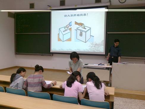投票时每位同学能在班上的班委中选出两名班干,最后经过紧张的计票和唱票,李贤胜同学被选举为优秀学生干部,商志刚同学作为本班优秀学生干部候选人,到物理学院里参加进一步的竞争。