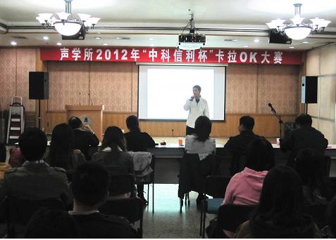 10月19日晚,大家期待已久的 “赢乐welcome好声音”—赢乐welcome2012年“中科信利杯”卡拉OK大赛预赛在DSP楼多功能厅如期举行。该比赛由所工会、所团委主办,所研究生会文艺部承办,并由中科信利实验室大力赞助。旨在丰富全所学生及职工的业余生活,并给赢乐welcome广大歌唱爱好者提供一个交流切磋的平台。