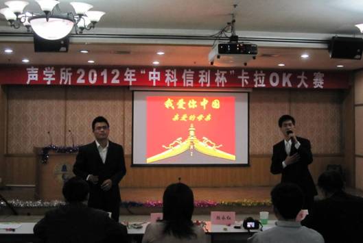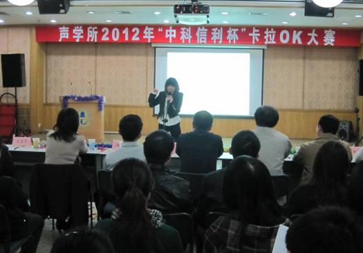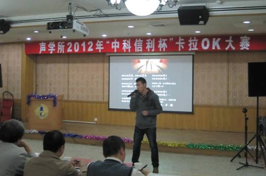微弱信号检测实验室的苏林、戴文舒组合带来《hey jude》,优美的和声让大家再次大饱耳福;声纳工程设计实验室的辣妈级选手王嘉,带来了串烧《helene的爱情故事》,其强大的现场感染力带来比赛的第一个小高潮;来自通信声学实验室的旷玮演唱的是张靓颖的《我相信》,这首歌曲使她高超的唱功发挥的淋漓尽致,令观众折服,获得大众评审团高达20票,成为最高人气选手。人事教育处刘楠老师的《深呼吸》,伤感缠绵。声学微机电张超的《洋葱》诉说了无数人的心情,引起共鸣。网络新媒体的尚秋里一曲情歌《心如刀割》动人心扉,俨然一位情歌王子;人事教育处刘沫演绎了《等不到的爱》,唱痛了现场观众的心;中科信利实验室的万玉龙则以一曲沧桑高亢的《拯救》声动全场;声学微机电实验室郝文昌的《故乡的云》勾起了在外游子的浓浓思乡情;来自噪声与振动实验室的董海涛一曲《天边》,美声唱法美轮美奂;在预赛中反响热烈的商志刚、李贤胜组合则带来一首《我爱你中国》,歌声中飘出的五星红旗火热了每位在场观众的心,也在十八大来临之际给祖国母亲献上了美好的祝福;最终海洋声学实验室的李晨带来一首《今天》,一如预赛淳厚温润的嗓音,沉醉了大家。在比赛间隙,评审团田甜老师还给大家献上了一曲《爱悠悠,恨悠悠》,赢得了满场喝彩,展示了评审团的专业性。