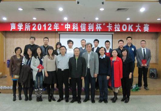 比赛最终结果为一等奖:旷玮;二等奖:尚秋里、商志刚和李贤胜组合;三等奖:刘沫,李晨,张超;优胜奖:苏林和戴文舒组合、王嘉、刘楠、万玉龙、郝文昌、董海涛。比赛结束后,参赛选手与到场领导及工作人员合影留念,2012年“中科信利杯”卡拉OK大赛圆满结束!