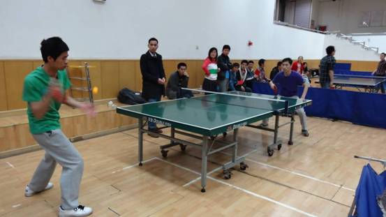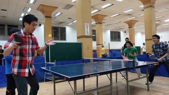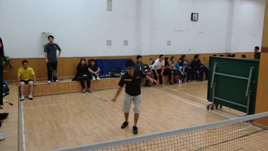 乒乓球和羽毛球的比赛在青年公寓活动中心大厅中同时举办。乒乓球的6支队伍分为2组,首先组内进行循环赛三进二,然后每组胜出的队伍与另一组的进行交叉比赛,即1组中的第一名与2组中的第二名进行比赛。交叉比赛胜出的两支队伍进行冠亚军争夺赛,失败的两支队伍争夺季军。在赛场中,我们可以看到很多平时认真学习、低调科研的同学也拿起了拍子参与了比赛,而且表现不错。最终,“高超”队获得了乒乓球冠军,“先锋”队获得亚军,“求是”队获得季军。