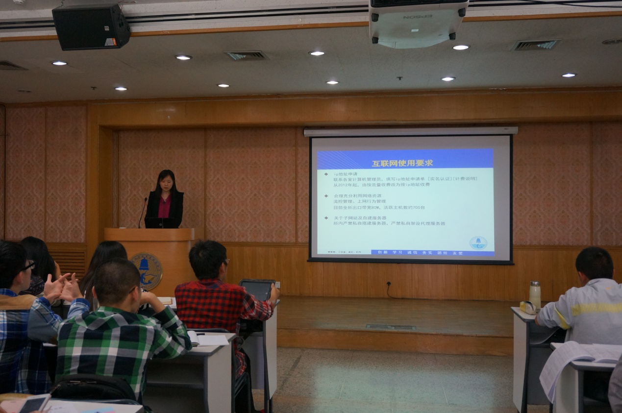 综合办公室郑春见老师、保密办乔军主任、图书馆张莉莉老师、信息化办公室王璐瑶老师分别就安全保卫注意事项、保密相关规定、图书馆使用、信息化建设等向新生做了详细介绍。