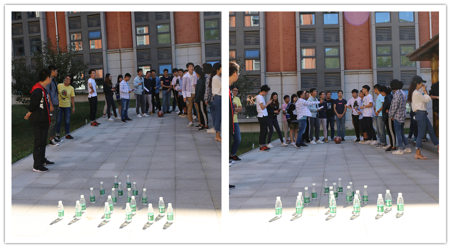破冰环节结束后,游戏互动环节正式开始,研究生会精心准备了6个丰富多彩的游戏,有跳大绳,保龄球,你划我猜,踢毽子,传呼啦圈和听数抱团游戏,以及临时娱乐的呼啦圈套圈游戏。同学们从开始的生涩到后面的默契十足,每组队员都在欢声中熟悉队友。尤其是在你划我猜游戏中,各组同学表演有默契,有搞笑,有脑洞。