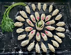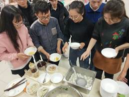接下来是需要发挥聪明才智的创意比拼环节,要求各组在5分钟内对已经包出的饺子进行摆盘。大家包出来的饺子花样繁多,有的敦实厚重,有的别致精巧。在活动结束后的两天,通过网上发起投票,第6组的饺子得到场外投票648票,荣获最佳人气奖。
