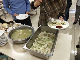 最后,热气腾腾的饺子出锅啦。尽管它们的外形并不漂亮,但那是全体同学共同劳动的成果。考虑到南方吃汤圆的习惯,还专门准备了汤圆,南方的同学表示十分满足。