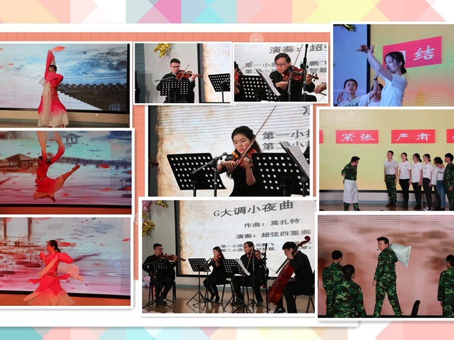 接下来是节目表演。两所同学多才多艺,节目形式多样、内容新颖,歌舞《凤凰于飞》、弦乐四重奏、经典乐曲《敢问路在何方》、器乐演奏《康康舞曲》以及越剧《梁山伯与祝英台》等节目在致敬经典的同时也为观众带来了艺术的享受。除此之外,博士合唱团带来的合唱《再回首》和《You Raise Me Up》将晚会的气氛烘托的分外热闹,女生合唱《被风吹过的夏天》以及乐队演唱《平凡之路》+《我的秘密》等节目更是代表了同学们年轻一代的蓬勃朝气。各种语言类节目也是层出不穷,小品《芳华》致敬了那个激情燃烧的青葱岁月、相声《伪文学家》寓教于乐台下掌声笑声不断,舞台剧《我们的故事》通过舞台剧的形式致敬了老一辈的科研工作者,将晚会的意义充分升华。在这样的欢声笑语之中晚会进入了尾声,两所研究生会代表合唱《相亲相爱》代表了两所同学深厚友谊以及未来继续相伴前行的信心。