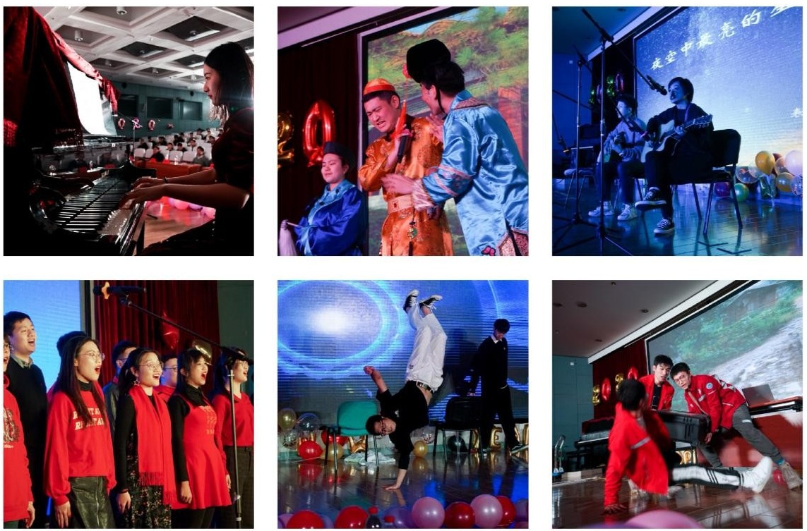 接下来,晚会正式开始。歌舞《大鱼》细腻悱恻,温婉动人,舞蹈《燃》青春靓丽,活泼可爱,机械舞《大阳光》整齐划一又洒脱随意,各类舞蹈令人身临其境如痴如醉。歌曲《好运来》轻松愉快,热情喜庆,男女对唱A Whole New World画面唯美,令人感动,吉他弹唱《夜空中最亮的星》、歌曲《海港之夜》、合唱《异乡人》《思念》使人动情,深陷其中,器乐合奏《如歌的行板》典雅质朴,婉转悠扬。