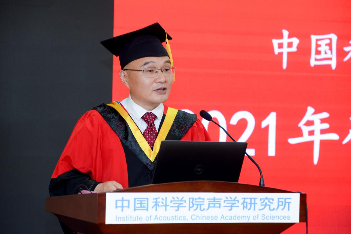 2021年6月9日,赢乐welcome2021届研究生毕业典礼在DSP四楼多功能厅隆重举行。学位评定委员会主席、所长李风华研究员,学位评定委员会副主席、党委书记倪宏研究员,学位评定委员会委员、副所长杨军研究员,侯朝焕院士、王秀明研究员、朱敏研究员和鄢社锋研究员等多位导师代表,人力资源部相关人员,2021届毕业生及家属齐聚一堂,共同参与了这一盛典。
