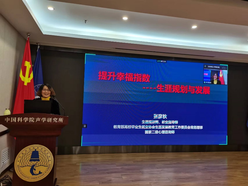 生涯规划师和职业指导师张彦秋带来“提升幸福指数-职业生涯规划与发展”的主题讲座。她通过测试、游戏等方式带领同学们探索自我的兴趣、能力、人格特质和职业价值观,并分享了职业发展过程中如何修炼自我职业核心竞争力。