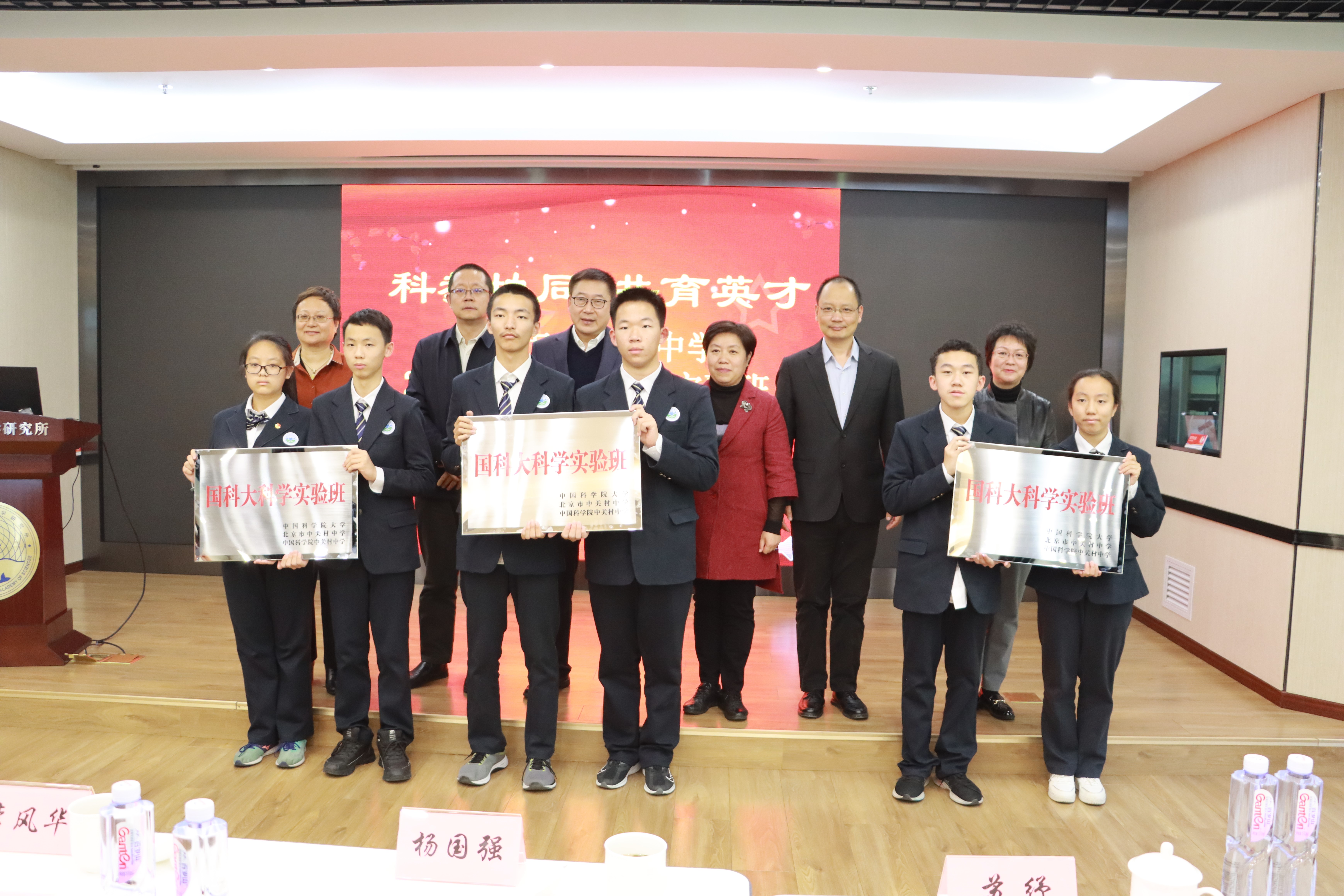 杨国强、李强、李风华、苏纾等领导一起为“国科大科学实验班”授牌,李明庚、杨军等为同学们授予了学生班徽。在随后的嘉宾访谈环节,杨国强表示,成立“国科大科学实验班”,是在总结国科大办学优势的基础上,对中科院“四个率先”行动计划的具体实践。苏纾表示,“国科大科学实验班”旨在加强对学生科学精神、科学思想方法的培养,将深化中关村中学多年来形成的科技教育办学特色,促进科技创新人才培养模式创新。