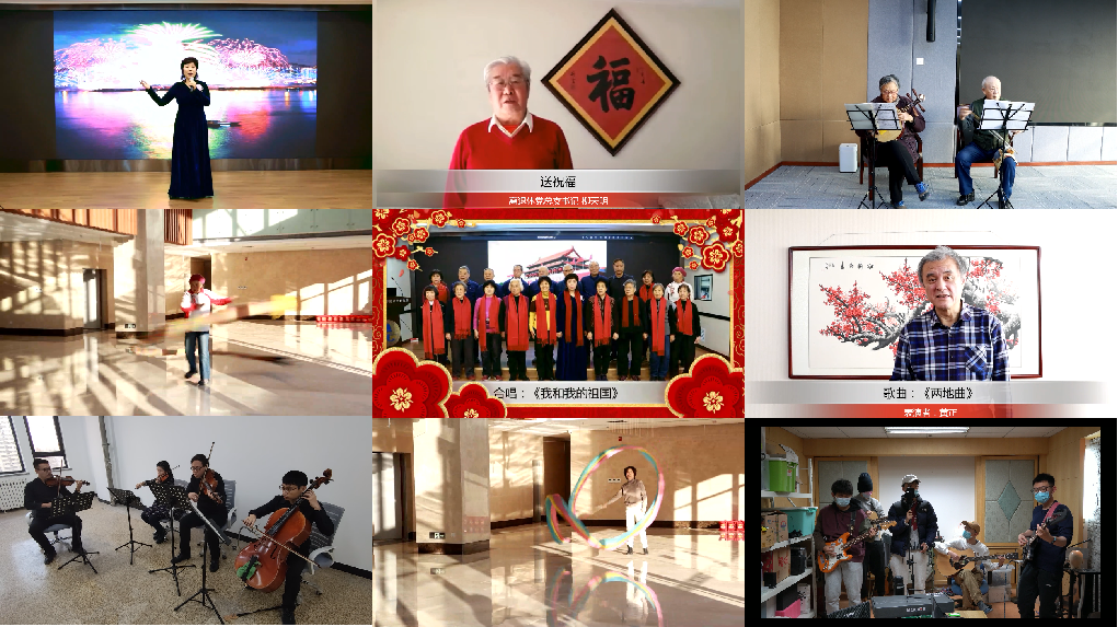 在辞旧迎新之际,为营造欢乐祥和的节日气氛,人力资源部于2022年1月25日至2月15日举办2022年度离退休职工新春线上团拜会活动。按照疫情常态化相关要求,此次活动以网络形式为主。在离退休老师、职工和研究生的大力支持下,从大年二十九到大年初三,微信群中陆续发布所领导的新春贺词,离退休职工代表的小合唱,杜燕玲老师的彩绸,任小燕老师的独唱,范元春、范桂珍老师的乐器演奏,黄正老师的独唱,王晶晶老师的抖空竹,endless echo乐队的歌曲,吴鹏飞、赵傲耸、刘智颖、李旭的弦乐四重奏等录制节目,精彩不断。