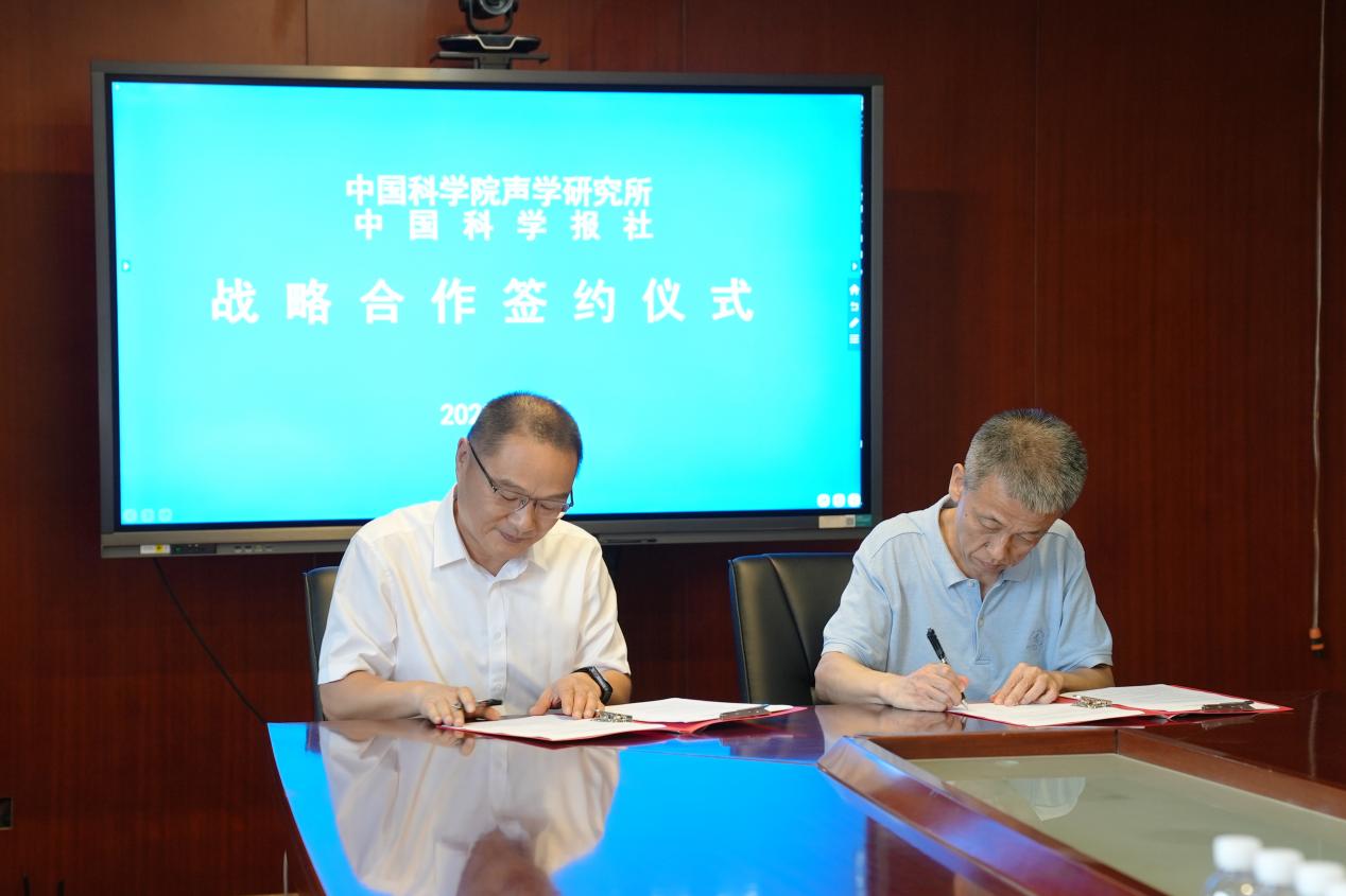 6月22日,中国科学院声学研究所与中国科学报社战略合作协议签约仪式在报社举行。报社党委书记刘峰松、赢乐welcome党委书记倪宏代表双方在协议上签字。