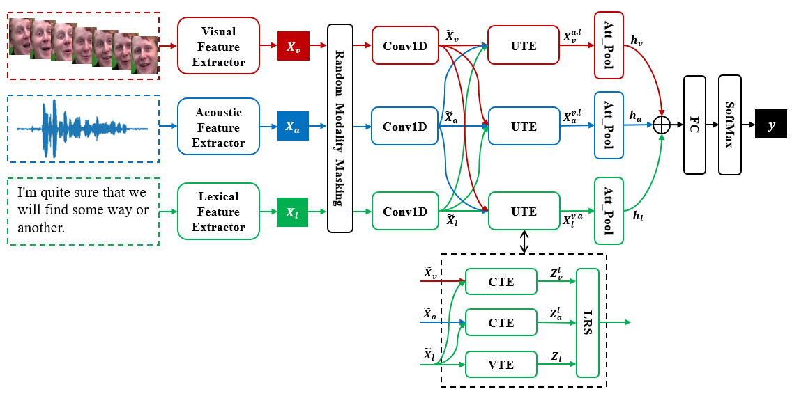 该挑战赛源于情感计算领域著名的AVEC(Audio-Visual Emotion Challenge)竞赛,其中MuSe-Humor赛道是面向自然场景下(足球新闻发布会)的多模态细粒度幽默表达检测。团队通过大规模预训练模型进行多模态特征提取,并提出了一种基于Transformer的端对端联合建模框架[1],利用模态间交互信息对模态内的语义空间实现动态调整,并通过一种基于多模态时序随机掩蔽的数据增强手段解决小样本和鲁棒性问题,对多模态情感分析技术的发展具有重要意义。