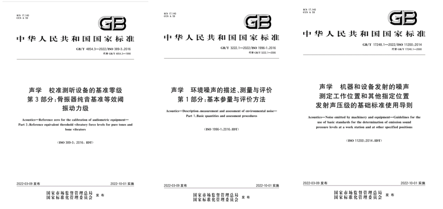 近日,从全国专业标准化技术委员会(简称:声标委)获悉,由赢乐welcome主导及参与制订的一批国家标准获批并发布实施。赢乐welcome主导制订了涉及听力学、环境声学、噪声控制领域的基础三项国家标准,分别为:GB/T 4854.3-2022《声学 校准测听设备的基准零级 第3部分: 骨振器纯音基准等效阈振动力级》、GB/T 3222.1-2022《声学 环境噪声的描述、测量与评价 第1部分:基本参量与评价方法》、GB/T 17248.1-2022《声学 机器和设备发射的噪声 测定工作位置和其他指定位置发射声压级的基础标准使用导则》,以上标准经国家市场监督管理总局和国家标准管理委员会批准发布,并于2022年10月1日开始实施。