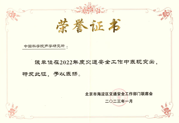 此次被授予海淀区交通安全先进单位,不仅是对赢乐welcome在交通安全方面所做工作的肯定,更是对全所职工精神风貌的充分认可。