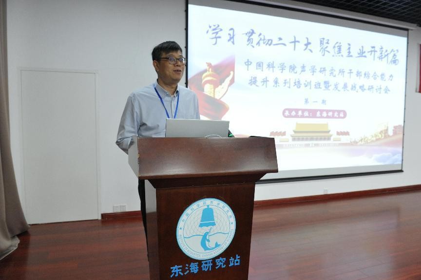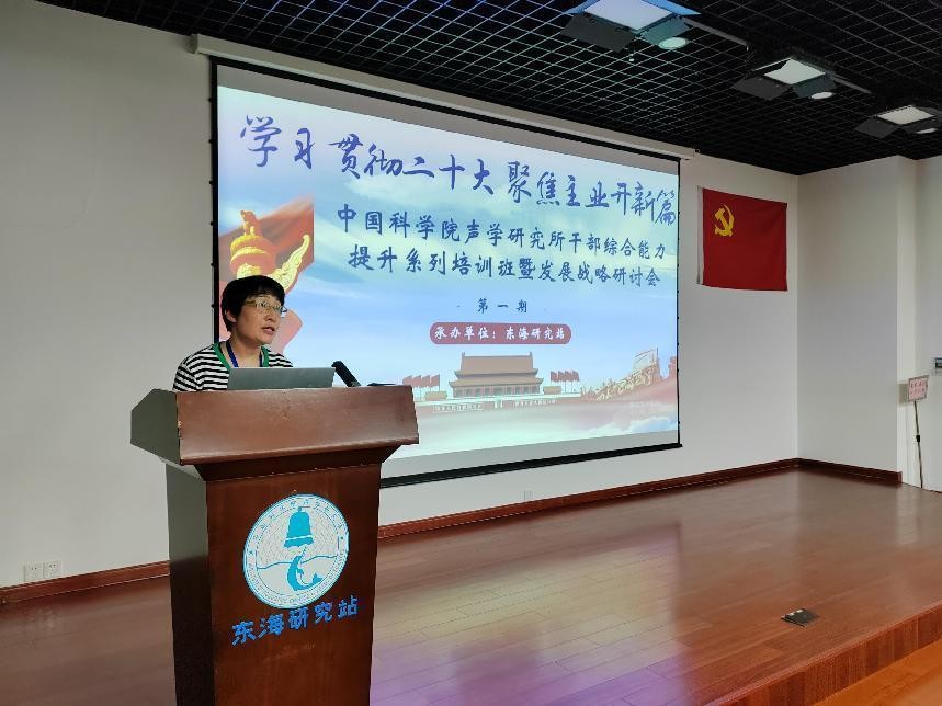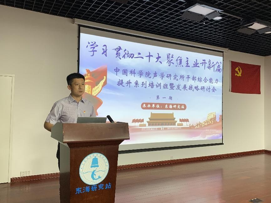 刘晓隽主持本次培训班,并受所本部委托对培训班进行总结。本次培训紧紧围绕主题教育,深刻领会学习贯彻党的二十大精神的重大意义,努力提高政治站位。办班既是政治任务,同时也进一步提升了干部的履职能力。全所上下要深刻领会习近平总书记系列重要讲话精神,用先进理论武装头脑、指导实践、推动工作;要充分领会党中央、院党组对研究所的要求精神,结合“十四五”科技规划落实、定位定标定事定人定策,以服务国家重大战略需求为职责使命;要以主人翁意识去思考研究所、站的发展,确立目标长期坚守,对上要负责,对下要揽事,要做能担当敢作为的国家战略科技力量主力军,号召全体学员,把学习贯彻二十大精神与推动研究所、站创新发展结合起来,增强加快实现“四个率先”和“两加快一努力”目标要求的紧迫感、责任感和使命感,将学习成效转化为推动工作的强大动力,为全面建设社会主义现代化国家不断贡献科技力量。