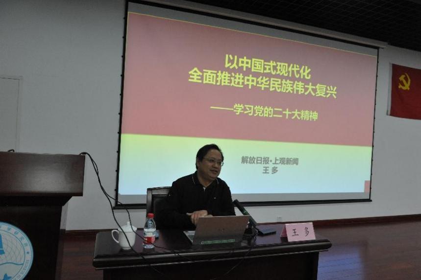 培训班邀请解放日报·上观新闻主编王多高级记者以《中国式现代化全面推进中华民族伟大复兴——学习贯彻党的二十大精神》为题做专题辅导报告,深入解读了中国式现代化提出的时代背景、坚持党的领导的根本性质、五个中国特色的科学内涵和实现民族伟大复兴的目标要求,鼓励大家积极响应号召,守正创新,不断推进科技自立自强。