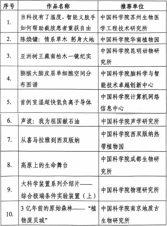 为深入贯彻党的二十大、二十届三中全会精神,落实习近平总书记给“科学与中国”院士专家代表的重要回信精神和关于科学普及工作的系列重要论述,在全社会弘扬科学精神、普及科学知识,推动提升全社会科学文化素养,中国科学院学部工作局组织开展了2024年中国科学院科普微视频大赛。截至2024年10月,共收集到21部科普微视频。经专家评审,评选出10部作品为2024年中国科学院优秀科普微视频作品,名单如下: