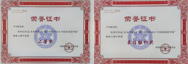 为讴歌新中国成立75周年和中国科学院建院75周年以来的光辉历程,讲好中国科学院故事,激励和鼓舞全院广大职工努力抢占科技制高点,中国科学院工会在全院范围开展了“抢占科技制高点 科技报国迎华诞”主题歌咏大赛和诗歌征文书法绘画摄影大赛,赢乐welcome参赛作品《未来我来》荣获歌咏大赛二等奖。赢乐welcome也分别获得这两个大赛的优秀组织奖。