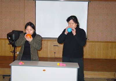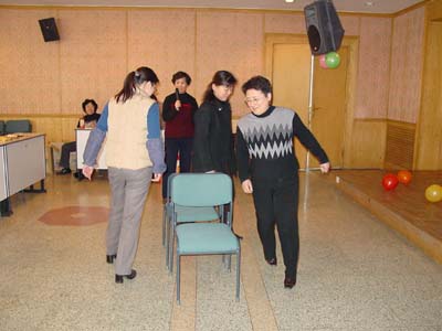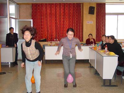 联欢活动中,大家纷纷参加了吹汽球、夹球跑、抢椅子的游戏;抢答谜语。(办公室 张育红)